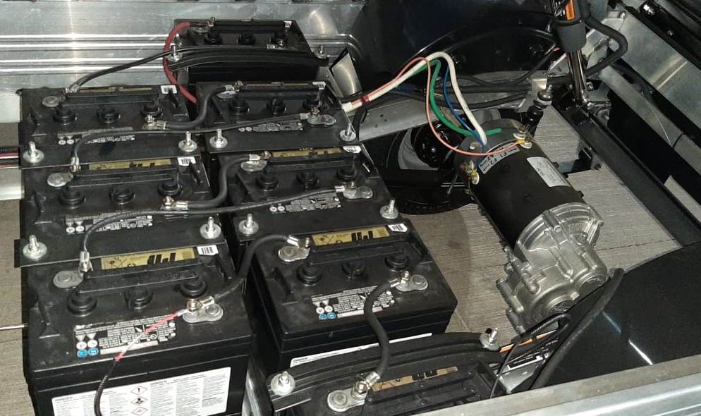 El modelo seleccionado para esta tarea es el Carryall 700 de la marca Club Car. Puede transportar hasta 680 kg de carga y tiene una autonomía de 70 km con una sola carga de sus baterías. Construido en aluminio de aviación este vehículo es ligero y más fuerte que su equivalente en acero. Con las gran ventaja de resistir muy bien a la corrosión.