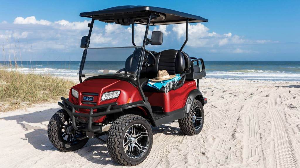 Los aros son de aleación del diseño Atlas que es exclusivo de Club Car. Las llantas radiales de bajo perfil completan la imagen destacada de este modelo.